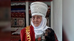 106-летней А.Эгемовой в честь Дня матери вручили сертификат на 150 тыс. сомов. Фото